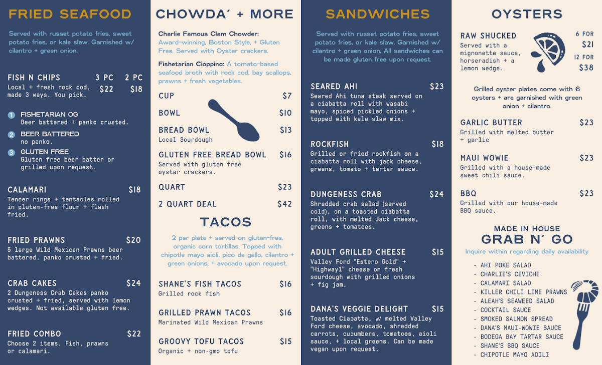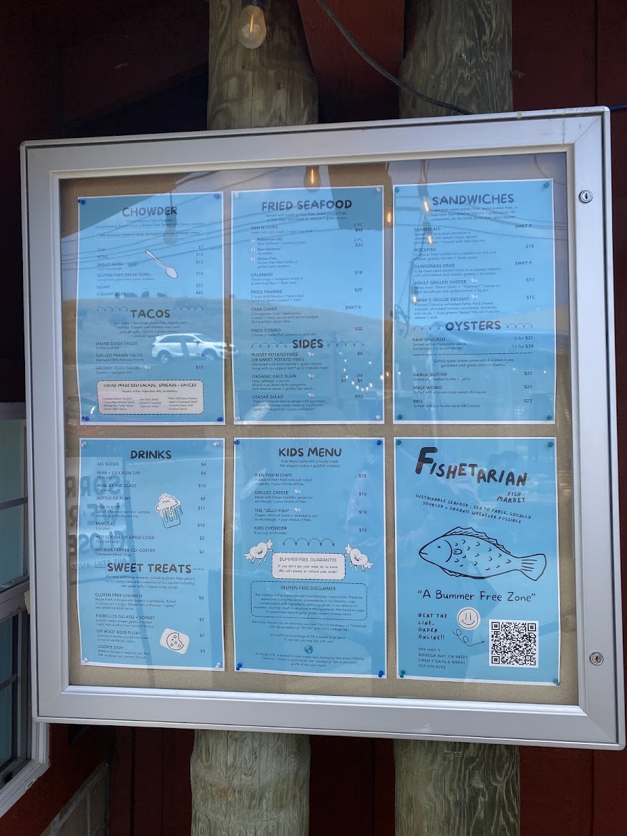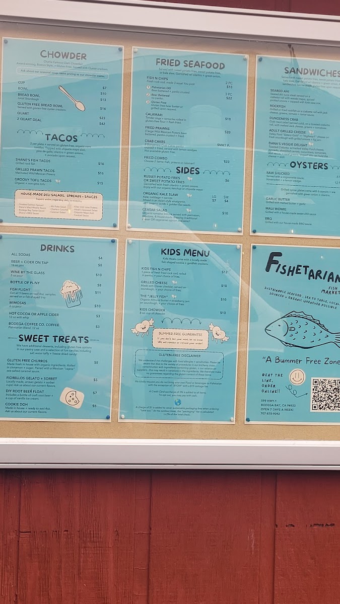Customer reviews consistently highlight the freshness of the food and the lively ambiance. Megan Gainey raves about her chowder and fries, while Ric Listella praises the extensive menu that caters to all cravings, complemented by a fantastic selection of beverages and desserts. With commendations from customers like Jen C and James Aton, it's clear that Fishetarian is a must-visit for anyone passing through Bodega Bay.