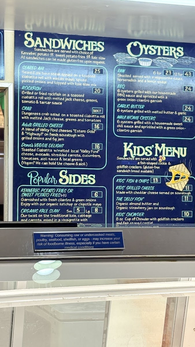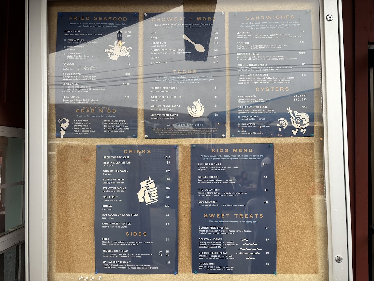 The menu is a seafood lover's paradise, boasting a variety of delectable dishes. Start with their acclaimed clam chowder served in a sourdough bread bowl, a flavorful blend of creamy broth packed with tender clams and served in a warm, crusty bowl. Other standout items include the lobster roll, overflowing with buttery lobster meat nestled in perfectly toasted bread, and their crispy fish tacos, featuring fresh battered fish that's crispy on the outside and tender within. Don't forget to indulge in the sweet potato fries, which provide a satisfyingly sweet contrast to the savory seafood. For those who crave variety, their calamari, oysters—both raw and BBQ—and fish & chips ensure there's something for everyone in the family to enjoy.